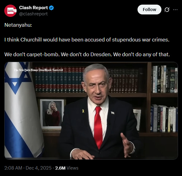 As a staunch critic of Benjamin Netanyahu, Darryl Cooper experienced a ‘worlds collide’ moment when Clash Report posted this video on X. Despite their differences, I’m sure Darryl is pleased to have someone share his opinion on Winston Churchill—an opinion that landed him on the blacklist a year ago.